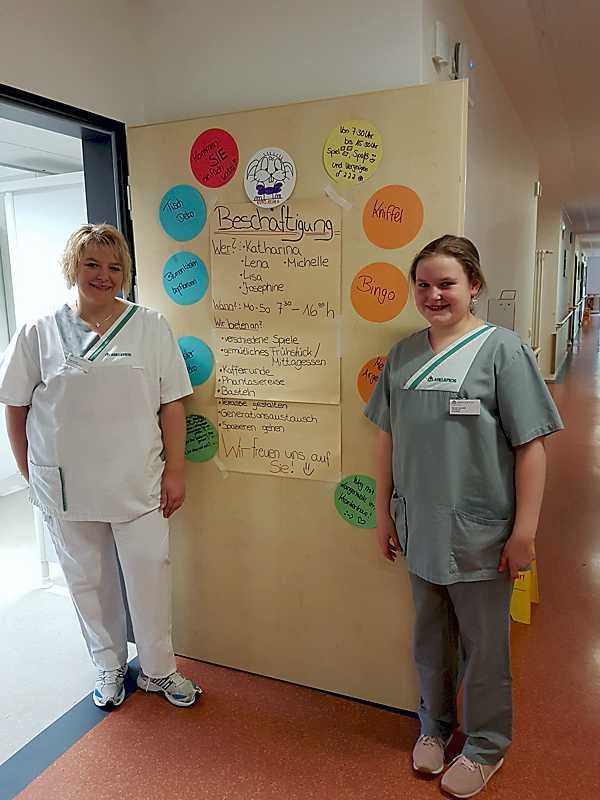 In der Asklepios Harzklinik Goslar war unter anderem die zehnjährige Tochter Hannah von Praxisanleiterin Tanja von Hoff im Rahmen des Zukunftstages dabei. „Ich finde es toll, dass meine Tochter die Möglichkeit hat, meinem Beruf der Gesundheits- und Krankenpflege kennenzulernen“, sagte Tanja von Hoff. Hannah sagte: „Hauptsächlich war ich in der Beschäftigungsgruppe der Geriatrie. Zwischen den Mahlzeiten und der Krankengymnastik konnte ich mit den Patienten Gesellschaftsspiele spielen und Schmetterlinge basteln, das hat Spaß gemacht.“