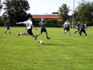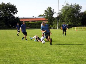 So auch das Spiel um Platz drei. Hier gewann SV Hahndorf 1. Herren gegen die Rautenfreunde mit 3:2. Auch beim Endspiel gab es ein Siebenmeterschießen. Hier gewann der FC Ping Pong gegen Ajax Lattenstramm mit 5:4. Turnierleiter Joachim Bürdeck konnte den Hahn an die Siegermannschaft des FC Ping Pong überreichen.