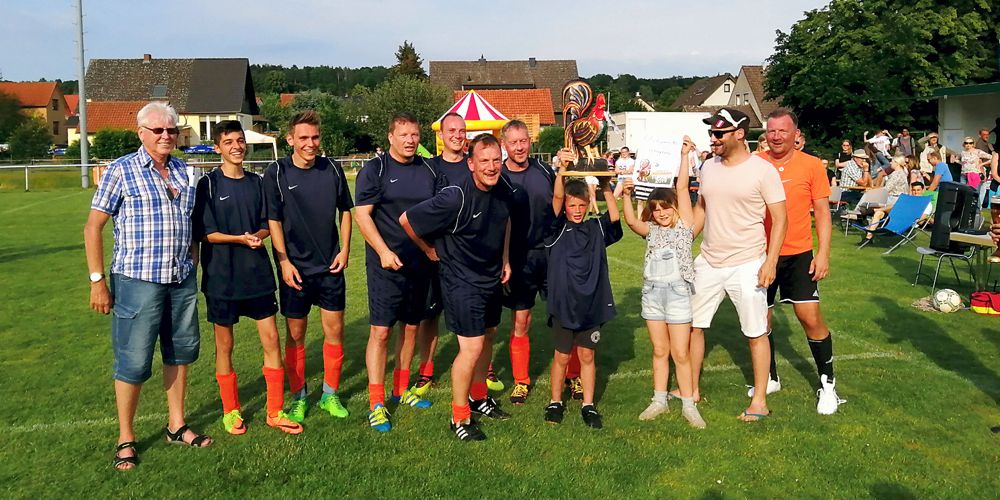 So auch das Spiel um Platz drei. Hier gewann SV Hahndorf 1. Herren gegen die Rautenfreunde mit 3:2. Auch beim Endspiel gab es ein Siebenmeterschießen. Hier gewann der FC Ping Pong gegen Ajax Lattenstramm mit 5:4. Turnierleiter Joachim Bürdeck konnte den Hahn an die Siegermannschaft des FC Ping Pong überreichen.