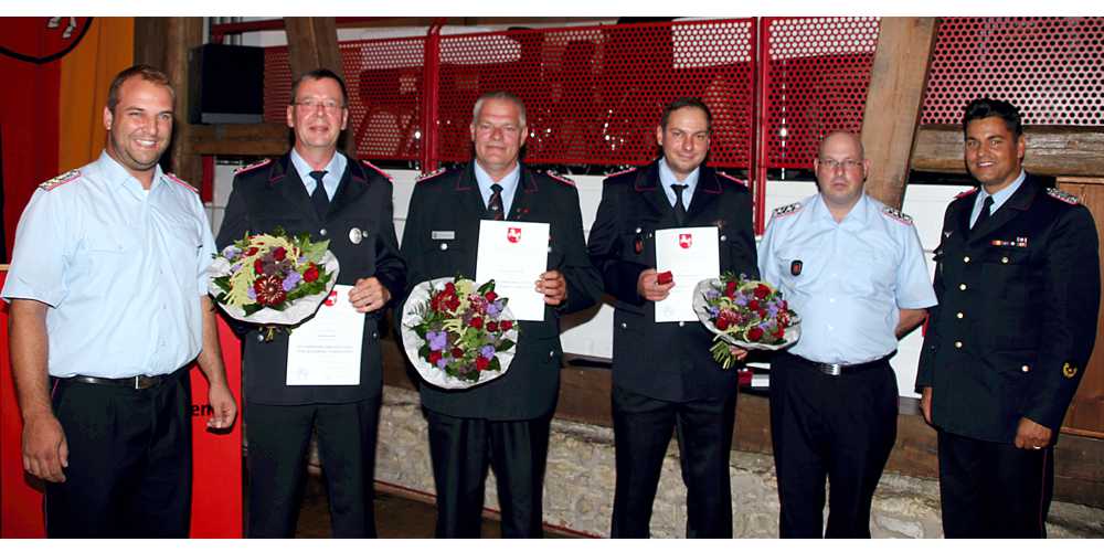Kreisbrandmeister Tobias Thurau, Gemeindebrandmeister Daniel Zalesinski und Ortsbrandmeister Jan Simons konnten drei verdiente Mitglieder ehren. Das Feuerwehrehrenzeichen des Landes Niedersachsen für 40-jährige Verdienste erhielt der Hauptfeuerwehrmann Pedro Becke. In Anerkennung für langjährig erworbene Verdienste im Brandschutz und bei der Hilfeleistung der Feuerwehren des Landes Niedersachsen wurden Löschmeister Thomas Mietzner und Löschmeister Andre Stellmach das Feuerwehrehrenzeichen für 25-jährige Verdienste verliehen.