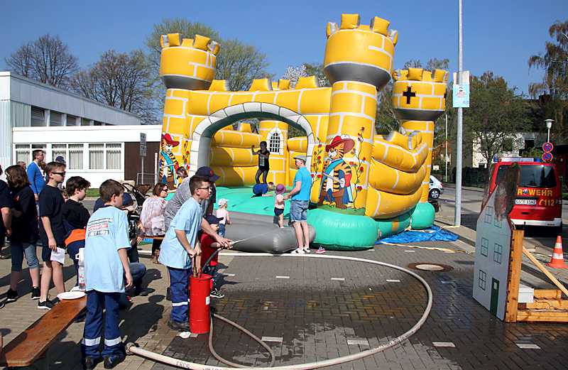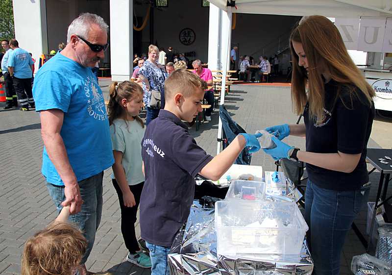 Die Braunlager Jugendfeuerwehr simulierte mehrere Brände, wie sie Zuhause passieren können. Vom Fernsehbrand, einer Fettbrandexplosion, erhitze Spraydosen bis zu Müllbränden. Auch selbst mit einem Feuerlöscher konnten die Besucher versuchen den Brand zu löschen. Viele bunte Kindergesichter waren zu sehen, denn es wurde ein Schminken angeboten.