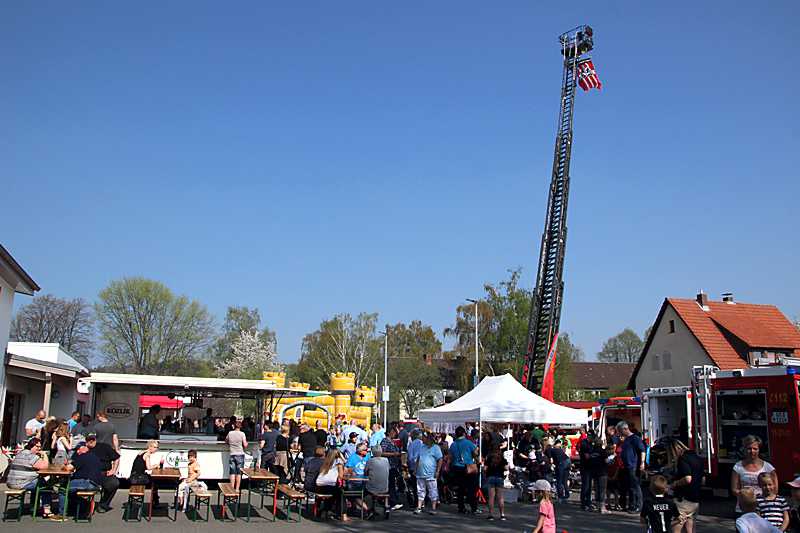 Hunderte von Besuchern, darunter viele junge Familien mit Kindern kamen, um sich zu vergnügen. Anziehungspunkt der Jüngsten war die Hüpfburg, hier konnte sich so richtig ausgetobt werden. Jedes Kind erhielt eine Laufkarte, damit konnten verschiedene Stationen besucht werden. Beim Schlauchkegeln mussten mit einem Schlauch mehrere Kegel getroffen werden. Das Haus löschen mit einer Kübelspritze machte natürlich bei den sommerlichen Temperaturen viel Spaß. Weiter waren der Heiße Draht, Leitergolf und eine Feuerlöschübung angesagt.