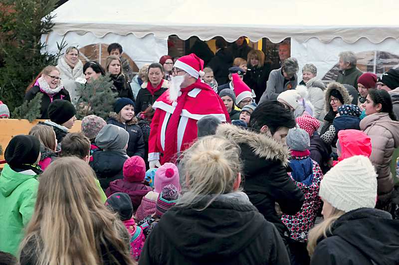 Der Nikolaus kam von Gustel Bock’s Hof mit Knecht Ruprecht auf einem alten Traktor herbeigeeilt, um seine Geschenke zu verteilen. Die Kinder warteten gespannt, was er wohl mitgebracht hatte. Allerdings sollten sie erst einmal ein Gedicht aufsagen und alle Zuschauer ein vierstrophiges Weihnachtslied singen bevor der Nikolaus die weihnachtlichen Gaben aus dem Sack hervorholte.