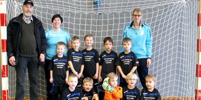 Die G-Jugend der JSG Harly bedankt sich bei ihrem Sponsor „Kartoffelhof Ecklebe“ aus Wehre. Die Spieler freuen sich über den neuen Trikotsatz, den sie von Martin Ecklebe gesponsert bekamen.