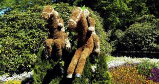Die Rennpferde springen über eine Hürde durch das blühende Blumenbeet am Karl-Franke-Platz in Bad Harzburg Foto/Text: Helmut Gleuel