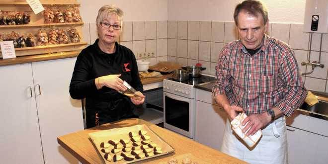 Eva Heuer und Rudolf Hattwig beim Verkaufen von Keksen für einen guten Zweck