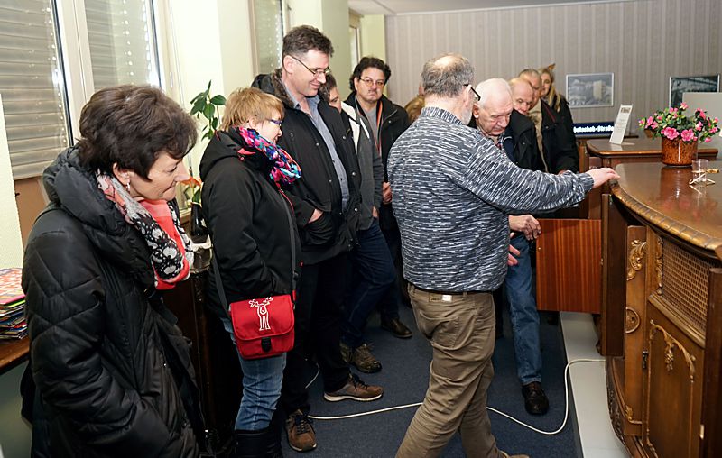 Auf über 600 m² Ausstellungsfläche erwartete die Gruppe eine Reise in die „gute, alte Zeit“. Zu sehen gab es Radio- und Fernsehgeräte, Plattenspieler und Tonträger von 1890 bis 1980. Besonders die Tonmöbel, Grammophone und die liebevolle Ausgestaltung mit Cocktailsessel und Nierentisch sind sehenswert. Die fachkundige Führung durch Herrn Uwe Erdmann brachte selbst den Funkamateuren viele neue Informationen zu der alten Technik.