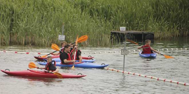 Begrüßungsansprache konnte man Bürgermeister Heinz-Jürgen Wiechens gewinnen. Auch die Vorsitzenden der der drei Vereine ergriffen kurz das Wort. Gedankt wurde dabei auch allen Helfern und Unterstützern des Schladener Naturbades. Im Laufe des Nachmittags besuchten ca. 150 Gäste das Event. Das Angebot war vielfältig, die Betreiberin des „Pommespalastes“ Frau Paulmann Mahnkoppp sorgte mit Speis‘ und Trank für das leibliche Wohl der Besucher. Die Damen des Chors Harmonie versorgten die Gäste mit gesponsertem Kuchen und frischem Kaffee. Helfer/Innen das Fördervereins sorgten für das Ambiente. Die Wasserretter hatten einiges organisiert. So hatte man ein Spielmobil besorgt, das 40 bis 50 verschiedene Spiele zu bieten hatte. Balancieren auf dem Seil war ebenso im Angebot, wie Pedalos, Geschicklichkeitsspiele und reichlich Wasserspielgeräte. Außerdem hatte man eine Wasserrutsche aufgebaut. Ein DLRG Rettungsboot mit Einsatzfahrzeug konnte besichtigt werden. Auf dem Badeteich drehte das Hochwasserrettungsboot der DLRG seine Runden und sorgte dafür, das die Kanu AG der Werlaschule mit Ihren Booten „erschwerte Bedingungen“ hatte und Ihre Runden bei „schwerer See“ paddeln konnten. Eine erfolgreiche Eröffnung setzt die Hoffnung in eine sonnige erfolgreiche Sommersaison 2015.
