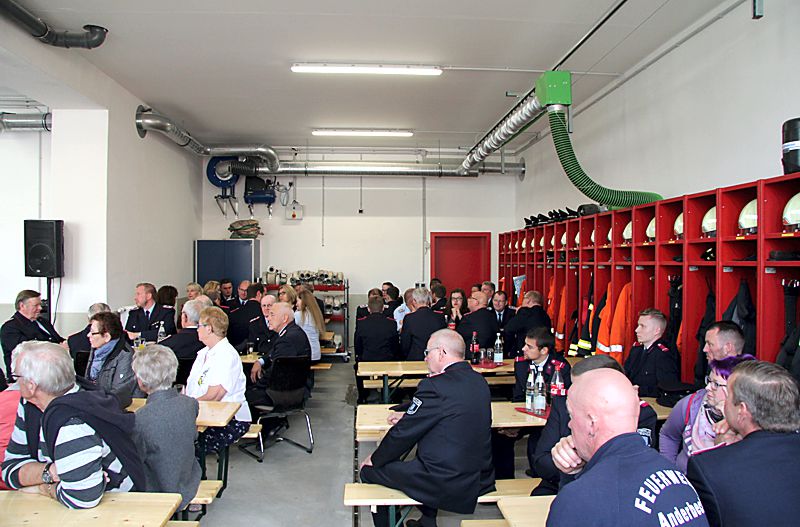 Auch das traditionelle Dorffest wird um und im Gerätehaus gefeiert. Der Bürgermeister wünschte der Wehr, dass sich immer genügend Kameraden finden. Und das alle immer gesund nachhause kommen. Stadtbrandmeister Matthias Brunke dankte den Feuerwehrkameraden, die mit ihren Eigenleistungen die Baukosten für ein erweitertes und modernisiertes Haus reduziert haben. „Die Freiwillige Feuerwehr muss nicht nur leistungsfähig sein, sie muss auch attraktiv sein. Nur so kann es gelingen, den für die Feuerwehr so wichtigen Nachwuchs für den freiwilligen Dienst zu gewinnen, denn hauptamtliche Kräfte wären bei der derzeitigen Finanzsituation der Kommunen überhaupt nicht finanzierbar“, so der Kreisbrandmeister Uwe Fricke.