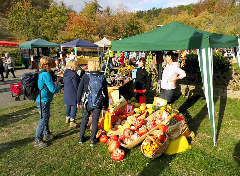 Frische Kartoffeln gab es von Reimers Hof aus Othfresen und viele Sorten von Kürbissen gab es zu erwerben. Mit einem Stand waren die Landfrauen aus Hornburg und die Tourist Information Hornburg vertreten.