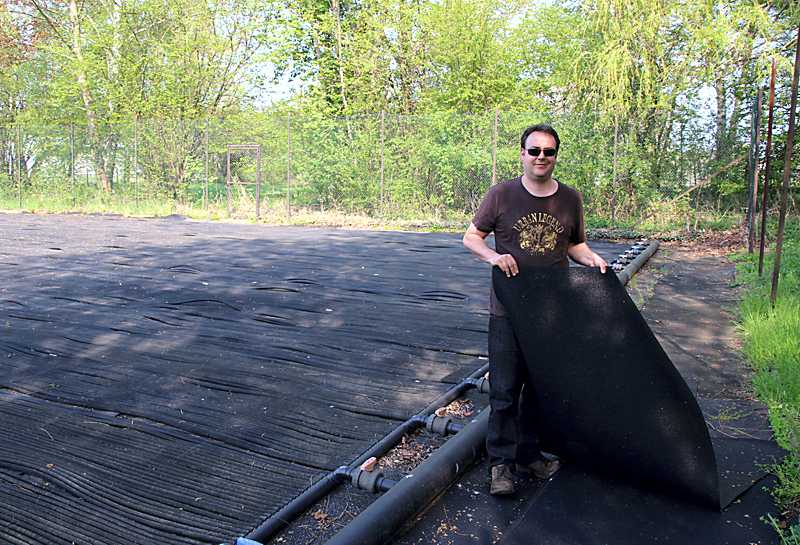 Seit einigen Tagen wird das große Becken mit Wasser gefüllt, bis es randvoll ist, dauert es eine Woche. Das Sprungbecken ist schon mit Wasser gefüllt und das Wasser ist auch schon erwärmt. Das Bad ist auf Sonne angewiesen, etwa zwei Grad wird das Wasser pro Tag erwärmt. Mit der verlegten Solaranlage wird das große Becken erhitzt und für das Springerbecken liegt die Solaranlage auf dem Technikerraum.