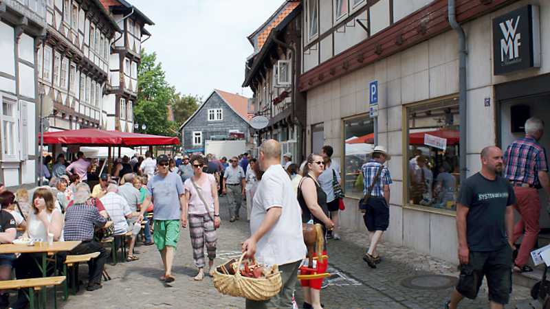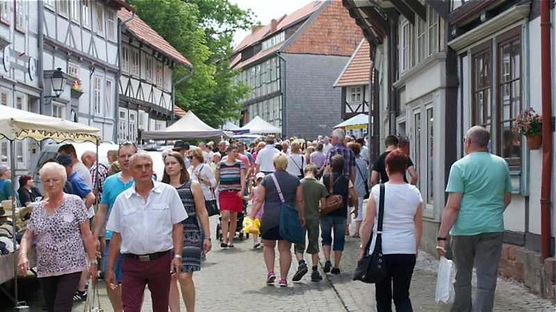 Am verkaufsoffenen Sonntag boten die Hornburger Geschäftsleute einen Einblick in ihre Ladengeschäfte und überzeugten mit günstigen Angeboten. Bekannte Autohäuser aus der Region stellten ihre aktuellen Neuheiten verschiedener Automarken vor. An den zahlreichen Flohmarktständen, verteilt auf die ganze Altstadt, konnte gestöbert und gefeilscht werden. Zahlreiche Bücher, Schallplatten, Geschirr und unzählige diverse Artikel waren im Angebot. Auch ein Obststand lockte viele Kunden an. Sie kauften besonders Spargel, Erdbeeren und Tomaten ein. Auch die jüngsten Besucher kamen nicht zu kurz, sie konnten sich auf dem Kinderflohmarkt für kleines Geld so manchen Wunsch erfüllen.
