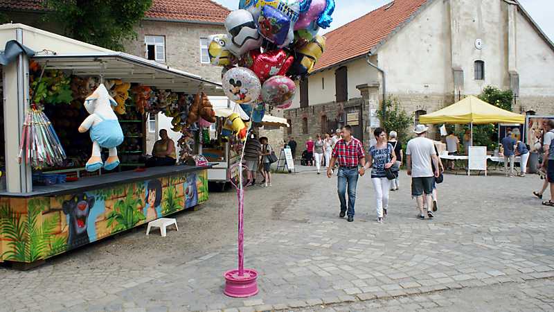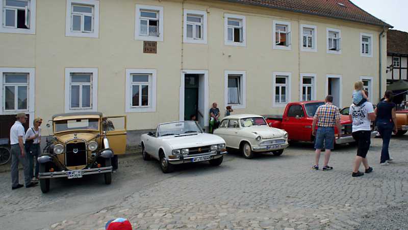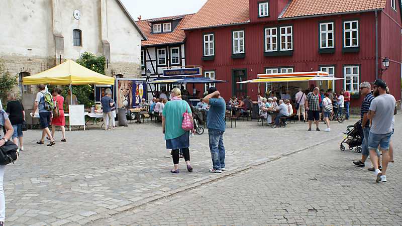 Verweilen konnten die Besucher auf den kleinen Hinterhöfen, Cafés und auf den Bänken auf dem Marktplatz. Auf dem Burginnenhof waren einige Oldtimer zu sehen, wie z.B. ein Ford, Baujahr 1930, 40 PS mit einem 3,3 Liter Motor. Auch einige Trabbis und alte Traktoren waren zu bewundern. Die Hornburger Landfrauen, die Jugendfeuerwehr und der Spielmannszug sorgten auf dem Burggelände für das leibliche Wohl. Auf dem Marktplatz bot Herbert Grünhage vom Stadtmarketing das beliebte Hornburger Landbier an und der Förderverein Freibad sorgte für das leibliche Wohl.