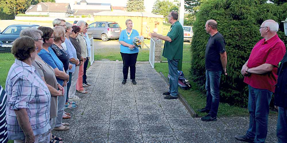 Die Schützenvögtin von Astfeld, Bärbel Borchers, wurde in Hannover Landesmeisterin in der Luftgewehr Altersklasse. Zur Überraschung der neuen „Landeskönigin“ standen die Mitglieder des Schützenvereins Astfeld am ersten Schießabend nach der Sommerpause Spalier vor dem Schützenhaus. Bärbel Borchers war etwas überrascht, dass sich so viele Aktive aus der Damen- und der Schützenabteilung vor dem Schützenhaus eingefunden hatten. Sie hatte so etwas geahnt, weil an diesem Abend beide Schießabteilungen zusammen zum Trainingsabend eingeladen wurden. Sonst wird sich immer an zwei verschiedenen Tagen zum Training getroffen. Klaus Thonig, 2. Vorsitzender des Schützenvereins Astfeld war der Organisator des Empfangs. Er freute sich, dass es eine Astfelderin geschafft hat, den Landesmeistertitel zu erringen.