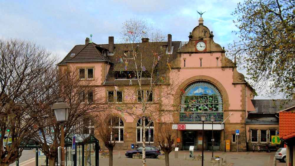 In Bad Harzburg anreisende Gäste werden auf dem Bahnhofsplatz herzlich auf das Osterfest eingestimmt.