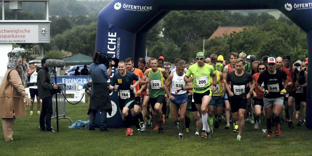 Den Läufern und Läuferinnen beim elften Bad Harzburger Bergmarathon strömten die Wassermassen an den Berghängen entgegen, als sie ihren Lauf auf der Rennbahn in Bad Harzburg begonnen hatten.