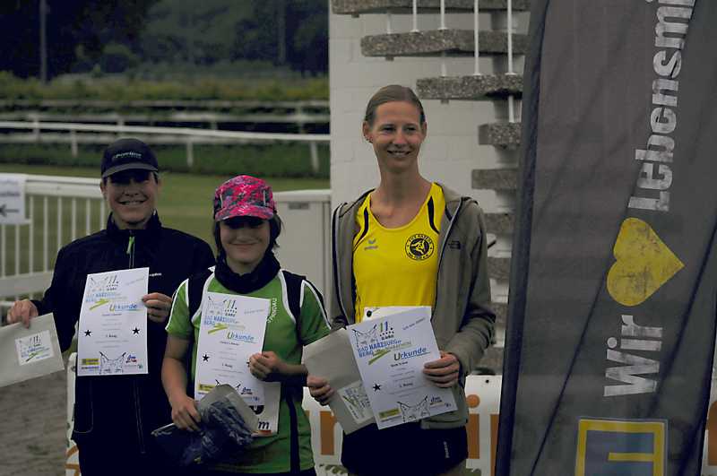Auch für das neue Organisationsteam waren die Wetterverhältnisse eine Herausforderung. Während die Strecken- und Verpflegungsposten im Regen standen, lief die Arbeit im Zielbereich weiter. Da wurden Siegermedaillen im Regen umgehangen, Nachmeldungen entgegen genommen und die Moderation aufrecht erhalten.