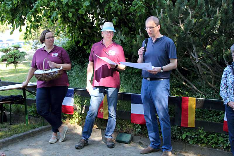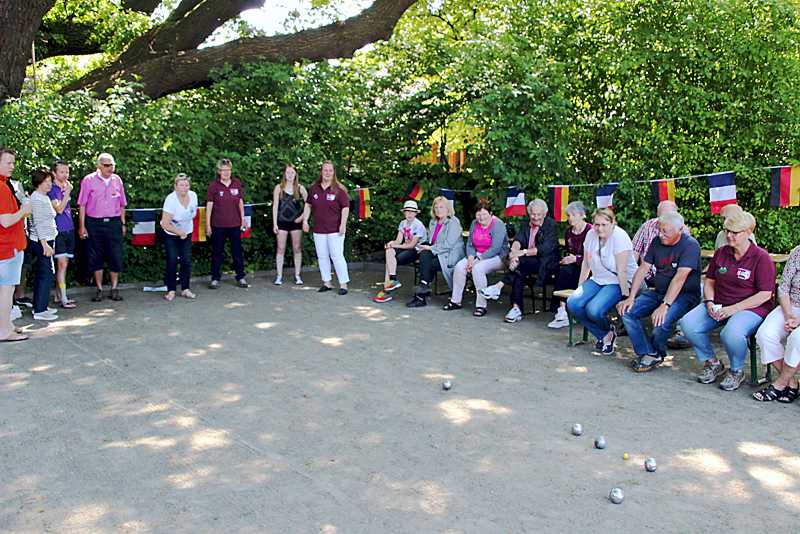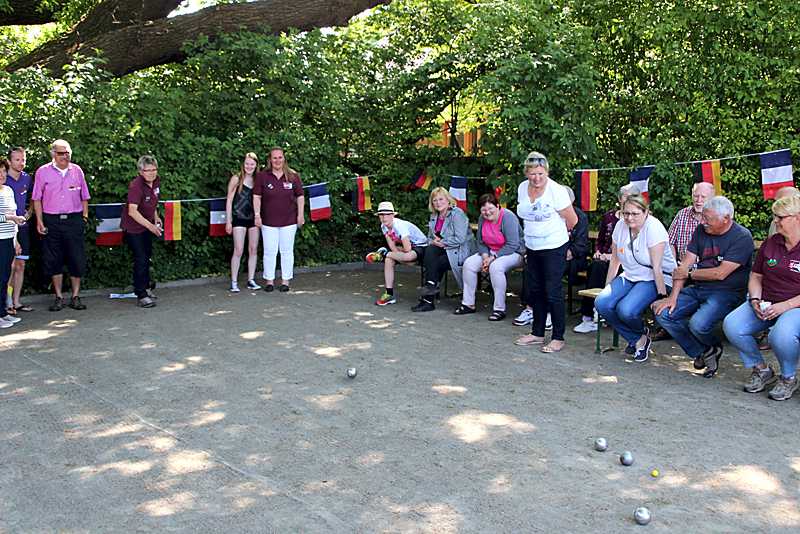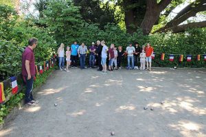 Anschließend ging es für die Franzosen nach der langen Reise zu den Gastfamilien in Schladen, Werlaburgdorf, Gielde, Isingerode, Beuchte, Lengde und Wolfenbüttel. Am nächsten Morgen wurde sich bei Sonnenschein und besten Wetter zum Boulen am Eichkamp unter der großen Grotjahn-Eiche getroffen. Pedro Becke und Hartmut Tschirner hatten das Turnier vorbereitet.
