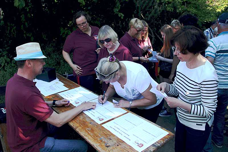 Alle 48 Teilnehmer aus beiden Partnerstädten zogen ein Los und wurden den 12 Mannschaften zugelost