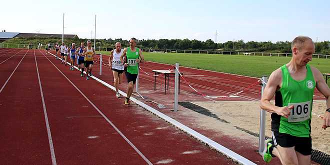 Zum Abschluß dann der 5.000 m Lauf der Männer und 3.000 m Lauf der Frauen (leider nur zwei Teilnehmerinnen). Sofort bildete sich ein Führungstrio mit Frank Balzer (VfB Fallersleben), Matthias Wilshusen (LC BlueLiners Wolfenbüttel) und Valentin van Dijk. Diese drei wechselten sich in der Führung ab und enteilten dem Feld von Runde zu Runde. In der letzten Runde verschärfte Balzer das Tempo und Wilshusen konnte nicht mehr folgen. Van Dijk griff ca. 120 m vor dem Ziel an, war schon vorbei, doch Balzer konterte und gewann mit 17:02,13 Minuten.