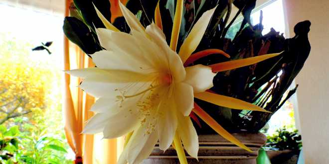 Ein Kaktus mit einer traumhaft schönen Blütenpracht, die leider nur kurze Zeit zu bewundern ist, Foto: Helmut Gleuel