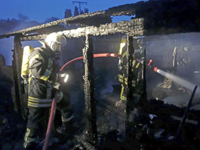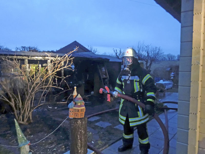 Große Gefahr bestand bei diesem Einsatz dadurch, dass in dem Schuppen neben Gartengeräten auch mehrere Gasflaschen gelagert waren, die aber schnellstmöglich geborgen werden konnten.