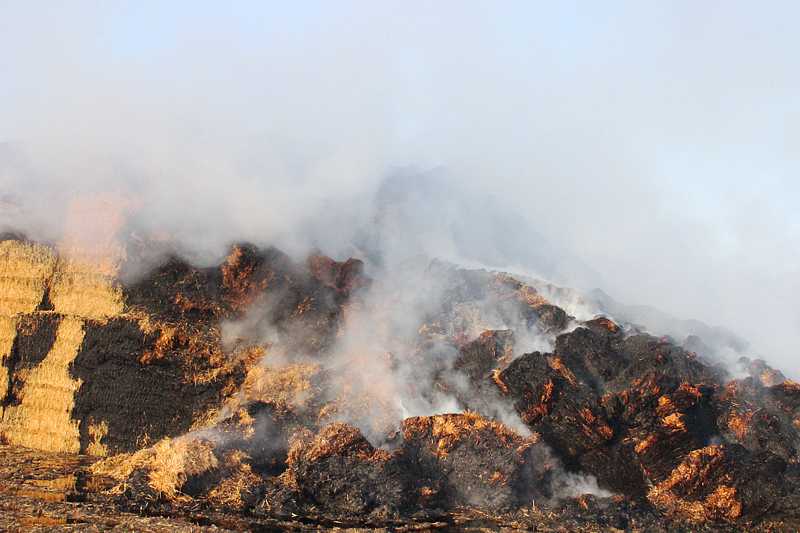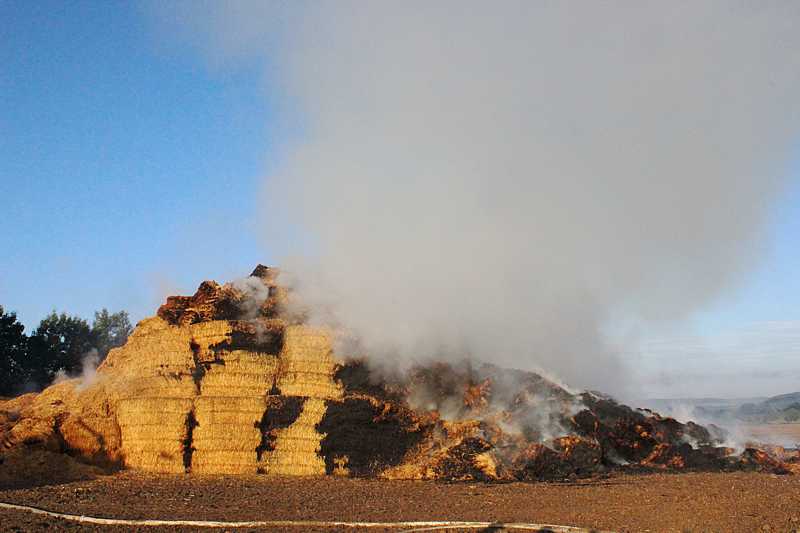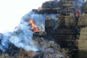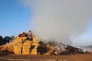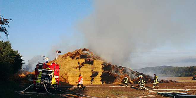 In der Nacht zum 24.9.2015 verbrannten auf einer Hofstelle am Weißen Roß 2500 Großballen Stroh und zwei Transportwagen.
