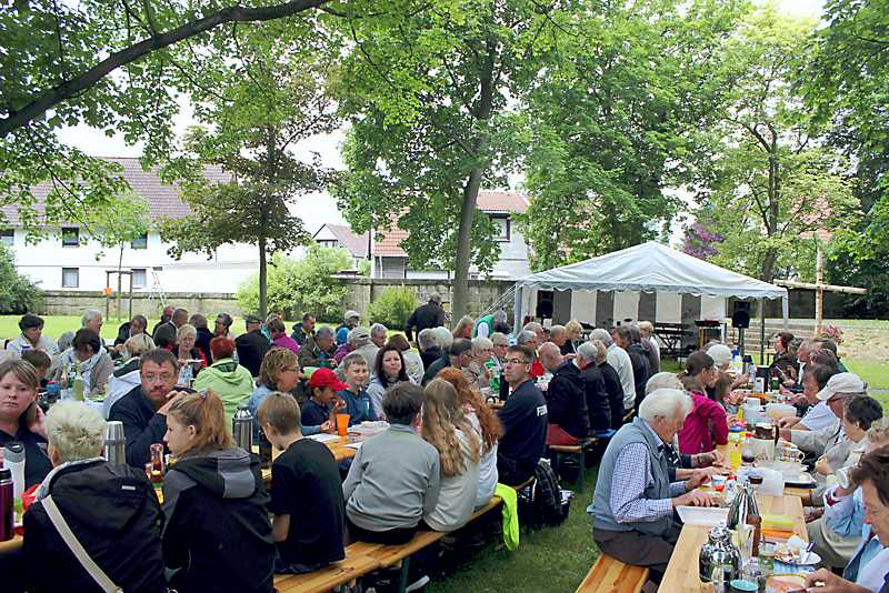 Besonders die Freiwillige Feuerwehr war mit vielen Teilnehmern vertreten. Alles musste selbst mitgebracht werden, von Brot über Brötchen, Wurst, Käse, Marmelade, Fisch und Salaten. Neben Kaffee und Tee gab es auch Sekt sowie verschiedene Biersorten. Während des Frühstücks gab es Musik von der Gruppe Herbststurm. Sie hat ihren Namen verdient, denn bei straken Wind flogen ihnen die Noten weg. Die Gruppe setzt sich aus Willi Lehmann (Schlagzeug), Peter Wieboldt (Bassgitarre), Volker Erdmann (Gesang) und Michael Samlowitz (Keyboard) zusammen.