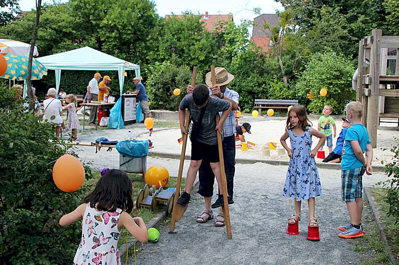 Neu auf dem Platz ist die Spielkiste des Netzwerkes Oker, ein neues Angebot für die Kleinen. Der Kinderflohmarkt hatte seinen Platz auf dem Gehweg vor dem Spielplatz. Lange Warteschlangen gab es immer beim Torwandschießen. Für das leibliche Wohl war mit Kaffee und Kuchen sowie Gegrilltem gesorgt.