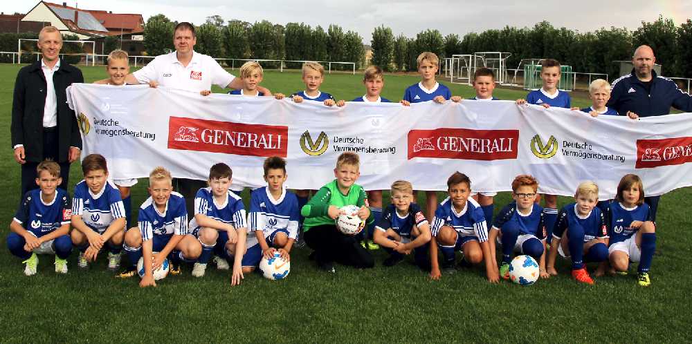 Die Deutsche Vermögensberatung Goslar, Thomas Karlstedt und Christian Böhlke, Goslar, Marienburger Straße 43, spendeten einen kompletten Satz Trikots an die D Junioren der JSG Harly