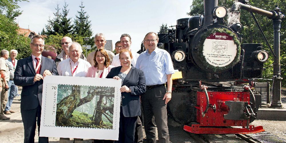 Sie waren es denn auch, die gemeinsam mit den Einladenden Matthias Wagener, Geschäftsführer der Harzer Schmalspurbahnen GmbH (HSB), und Andreas Pusch, Leiter des Nationalparks Harz, die ersten druckfrischen Ersttagsbriefe der neuen Briefmarke aus der Hand von Susanne Graul, Deutsche Post AG, entgegennahmen.
