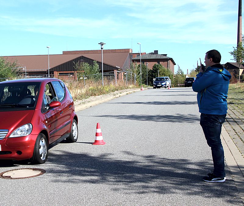 Beim anschließenden Fahrtraining auf dem Übungsgelände mit dem eigenen PKW moderierte der Sicherheitstrainer Thomas Hippler. Unter anderem wird das richtige Bremsen, das Einparken, Wenden und Rangieren trainiert oder die Reaktionsfähigkeit bei einer Slalomfahrt getestet. Geübt wird die individuelle Sitz- und Spiegeleinstellung. Bei der gemeinsamen Ausfahrt wird mit dem Fahrschulwagen in Kleingruppen und in Begleitung von zwei Fahrlehrern, Angelika Hoberg und Peter Scheffel, die Umgebung erkundet.