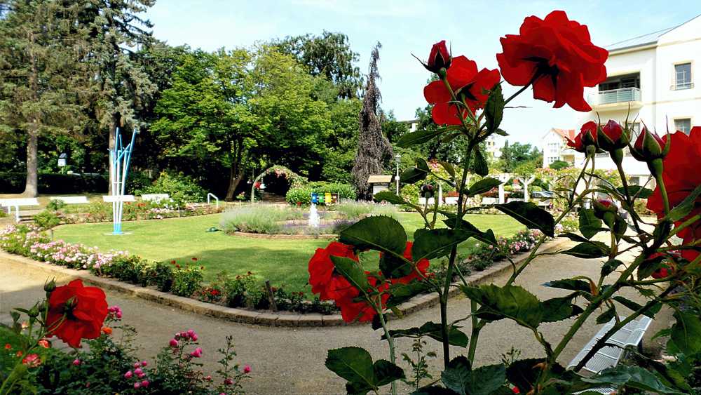 Der Rosengarten am Port-Louis-Platz in Bad Harzburg 3. Juli 2018 Herrliches Wetter und alle Sitzplätze sind frei. Text und Foto: Helmut Gleuel
