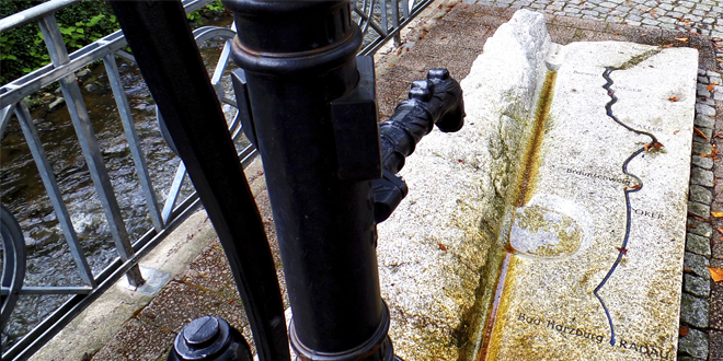 Der Weg des Quellwassers der Radau von Bad Harzburg zur Nordsee ist in der oberen Bummelallee in Stein gemeißelt. Text/Foto: Helmut Gleuel
