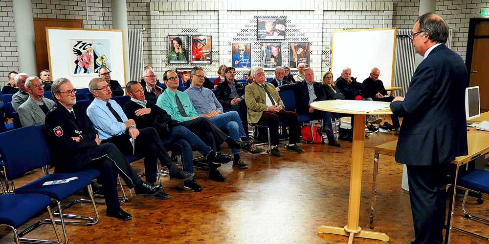 Als Hausherr hieß der stellv. Leiter bei der Polizeiinspektion Goslar, Polizeioberrat Hans Werner Röhrken, den Präsidenten des Zollkriminalamtes (ZKA) Norbert Drude, sowie etwa 50 sicherheitspolitisch interessierte Besucher/innen herzlich willkommen. Im Publikum saßen unter anderem Mitglieder der Gesellschaft für Sicherheitspolitik e.V. (Sektion Goslar), des Kreisverbindungskommandos Goslar, des Reservistenverbandes (Kreisgruppe Harz), der Kameradschaft ehemaliger Goslarer Jäger, sowie Beamte des Landkreises Goslar, des Hauptzollamtes Braunschweig und der Polizeiinspektion Goslar.