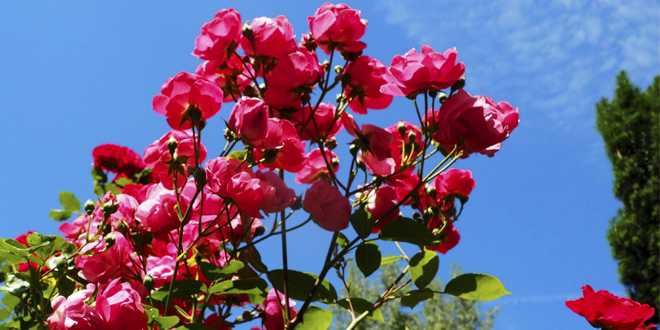 Gegenwärtig freuen wir uns über die Königin der Blumen in kräftigen Farben. Sie bringen schöne Farbtupfer in Parks und Gärten. Den Rosenstrauch habe ich heute in unserem Garten aufgenommen. Text/Foto: Helmut Gleuel