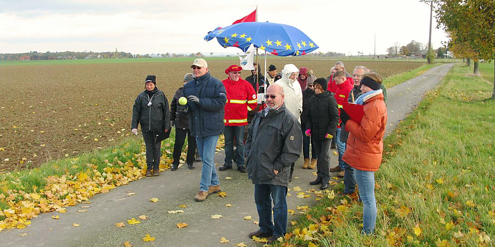 Nachdem die erste Stärkung erfolgt war, ging es weiter, bis man auf die erste Bank am Waldrand traf. Dort nutzte man den angebotenen Windschatten zum zweiten Knickpunkt. Vergnügt und mit lustigen, aber auch lobenden Kommentaren zu den verschiedenen Wurftechniken oder mißglückten Würfen, ging es weiter immer Richtung DLRG Station im Freibad. Ob mancher Wurftechnik munkelte man evt. “HALTUNGSNOTEN“ einzuführen. Forschen Schrittes durchquerte man Isingerode, während die Kugeln Pause hatten. Aber dann, am Beginn des “Rübenschnellweges“ nach einer kurzen Pause (Knickpunkt), ging man den Endspurt an und ließ sich nur noch durch Passanten per Pedes oder auf dem Radl unterbrechen.