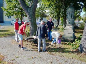 Ausgesucht wurden die Grünflächen um das Denkmal des heiligen Johannes Nepomuk und um das Feuerwehrgerätehaus. Da es in den letzten Wochen sehr wenig geregnet hatte, wurde am Vortag mit Hilfe von Kai Wegener der Boden gewässert, damit die Erde weich wurde. Dankenswerter Weise hat uns Jürgen (Fritze) Buhmann wieder einen Erdbohrer zur Verfügung gestellt, um die Pflanzlöcher auszuheben. Immerhin wurden 1300 Blumenzwiebeln in die Erde gelegt.