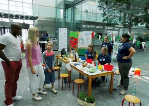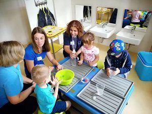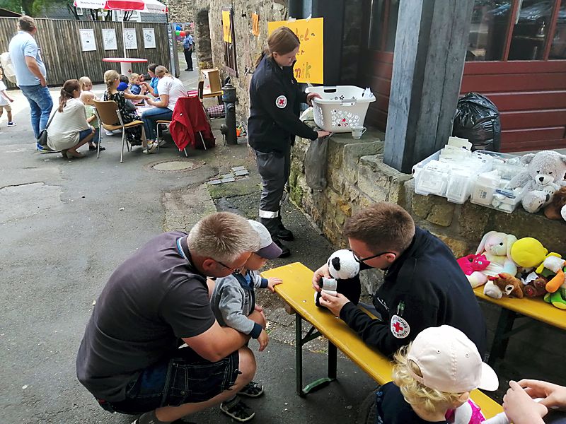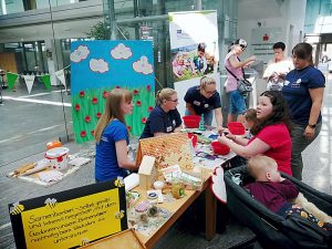 Im Angebot war eine Kuscheltierklinik, hier konnten sich die Kinder von den zahlreichen ausgedienten Kuscheltieren eins aussuchen und verarzten lassen. Ein Rettungswagen war ausgestellt und diesen konnten die Besucher besichtigen. Weiter waren Dosenwerfen, Kinderschminken und Popkorn herstellen im Angebot. Im Haus der kleinen Forscher wurde gezeigt, wie eingefrorene Eiswürfel mit Steinen unter Wasser auftauen. Mit dem Gedanken die Bienenvölker nachhaltig beim Wachstum zu unterstützen, wurden Samenbomben selbst gerollt und liebevoll hergestellt. Außerdem konnte gemalt, gebastelt und Perlenketten, Armbänder und Anhänger selbst aufgefädelt werden.