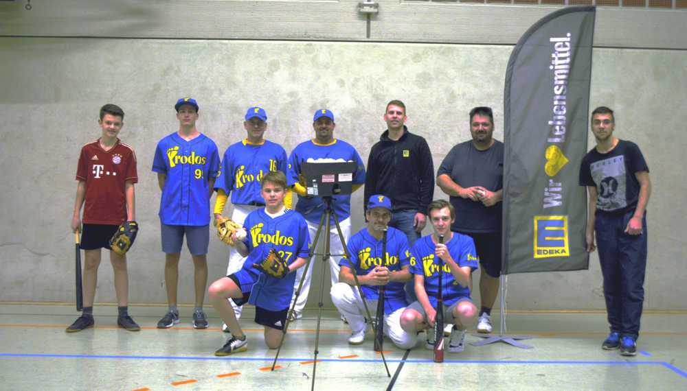 Danach bekam Herr Lunze einen Einblick in das Baseballtraining bei dem auch die Ballmaschine zum Einsatz kam. Begeistert sagte Herr Lunze zu, in der Saison 2017 einige Heimspiele der KRODOS zu begleiten.