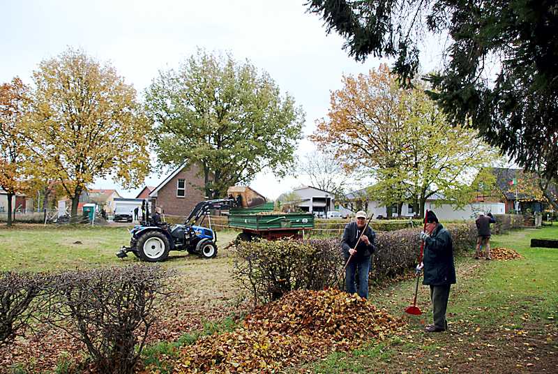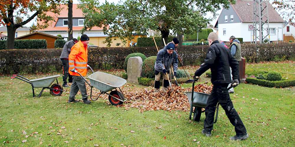 Seit über 20 Jahren ruft die Altersabteilung der Ortsfeuerwehr Lengde Mitte November zum Laubfegen auf dem Friedhof und rund um die Kirche auf.