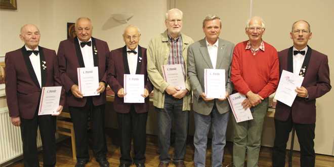 Richard Daubner und Günter Meyer gehören beide schon 60 Jahre dem DAS an. Seit 40 Jahren sind Frank Müller und Günter Weniger Mitglied im NDS). Mit den Liedbeiträgen „Über die Heide kam ein Wind“, „Pie Jesu“ und „Die Rose“ wurde die Feierstunde beendet. Am Samstag, 7. November, 16 Uhr, lädt der MGV zum Herbstkonzert in die katholische Kirche ein.