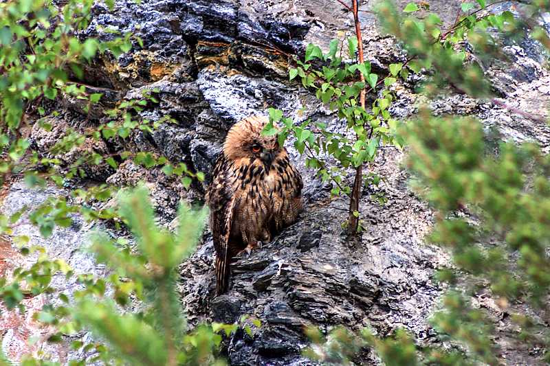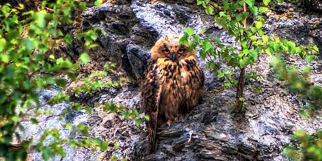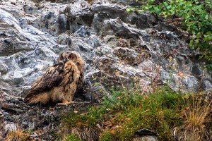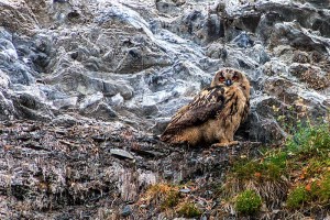 Foto eines Uhus und eines Jungvogels am Rammelsberg in Goslar