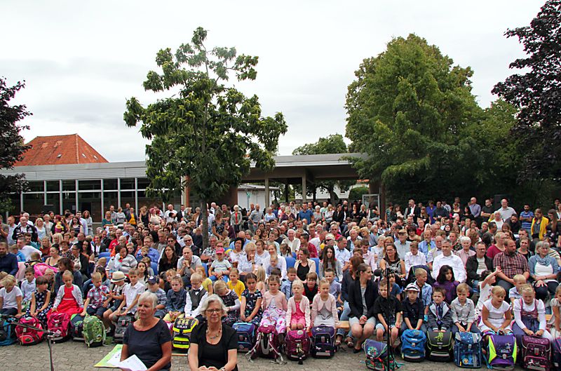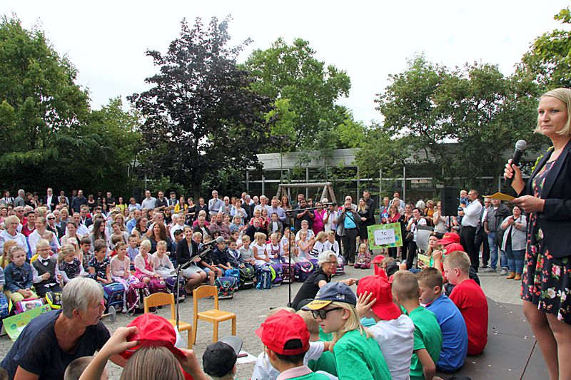 Eine Premiere gab es in diesem Jahr bei der Feier zur Einschulung an der Clemens-Schule in Hornburg: Die Feier fand unter freien Himmel auf dem Schulhof statt. Die neue Schulleiterin Marie-Louise Siemann empfing die 56 ABC Schützen mit warmen und aufmunternden Worten und begrüßte die zahlreichen Familienangehörigen.