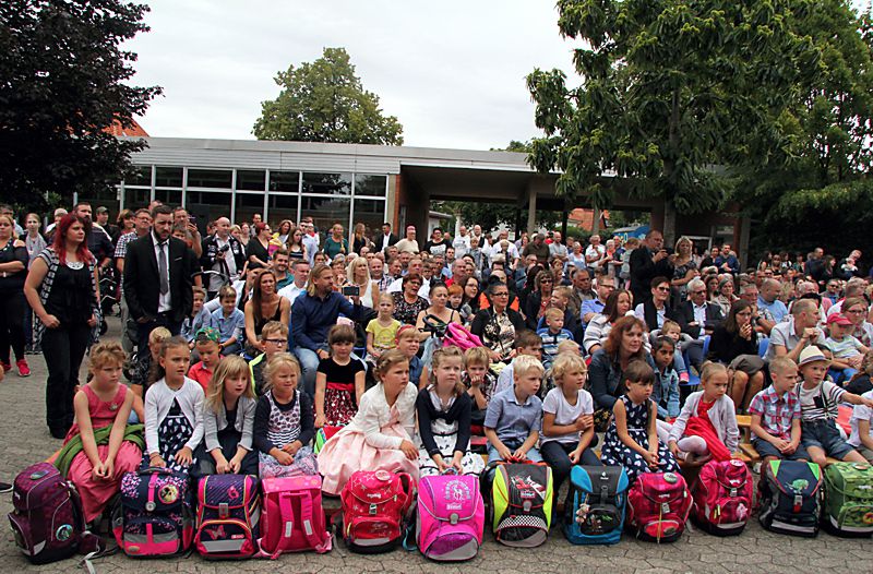 Die 56 Erstklässler aus Hornburg, Schladen, Werlaburgdorf, Gielde, Beuchte, Isingerode und Wehre gingen anschließend mit ihren Klassenlehrerinnen Astrid Meyer (1a), Kathrin Wondra (1b) und Henricke Kleene (1c) in ihre neuen Klassenräume zur ersten Schulstunde und erhielten die begehrten Schultüten.