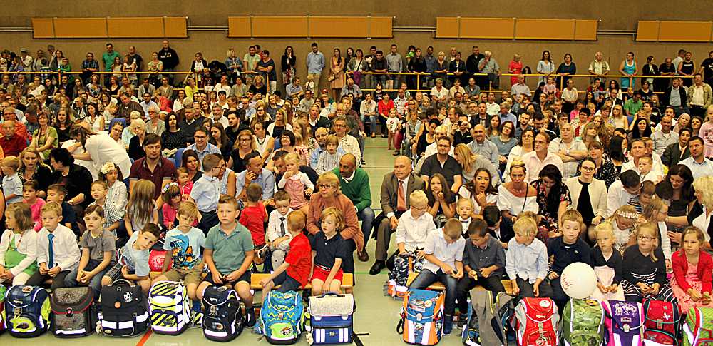Anschließend wurde in der Sporthalle die Einschulung gefeiert. Der stellvertretende Bürgermeister Bernward Köbbel und Schulleiterin Gesa Ossenkopf begrüßten die Kinder mit ihren Familienangehörigen. Unter der Leitung von Silke Kleinert gab es Vorführungen der Jazz-AG und die 3. Klassen sangen verschiedene Lieder. Mit ihren Klassenlehrerinnen Stefanie Henjes (1a), Annemarie Seefisch (1b) und Renate Gild-Dietzsch (1c) ging es dann für die ABC-Schützen in die Klassenräume zur ersten Unterrichtsstunde.