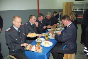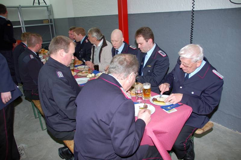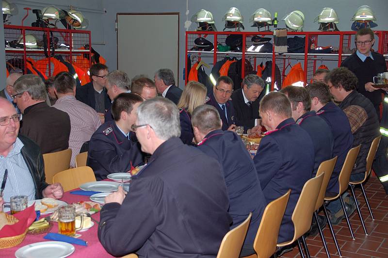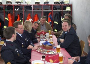 Dank sagte der Ortsbrandmeister an alle Aktiven. Es wurden mehr als 10.000 ehrenamtliche Sunden an Arbeit und Dienst geleistet. Für die neue Küche gab es nach einem Spendenaufruf eine fünfstellige Summe, auch Sachspenden wurden bereitgestellt. Viele Firmen haben die Feuerwehr bei den Eigenleistungen unterstützt. Weiterhin haben die Kameraden in Eigenleistung die Fläche vor dem Gebäude mit der Inschrift „Feuerwehr“ gepflastert.