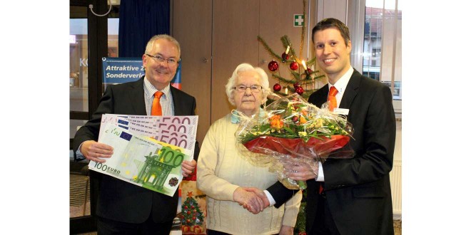 Die Freude war groß, als sie den Anruf der Volksbank erhielt. Der Vorstand der Volksbank Nordharz, Hans-Dieter Reichelt und Geschäftsstellenleiter Björn Roschanski gratulierten in der Geschäftsstelle Schladen der 89-jährigen Hornburgerin, die von ihrem Schwiegersohn begleitet wurde. „Im ersten Moment war ich richtig sprachlos“, sagte Erna Wurmsee. Was sie mit dem Geld machen möchte, hat sie auch schon geplant. Ein Teil ist für die Kinder vorgesehen und einen Teil wird sie für ihren Geburtstag zurücklegen. Im nächsten Jahr wird die Rentnerin 90 Jahre alt.