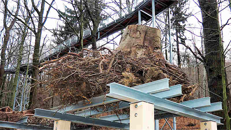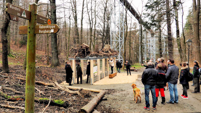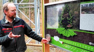 Nach der Begrüßung im Haus der Natur informierte Jörg Sonnabend, er ist Förster für Waldökologie beim Forstamt Clausthal, über den in nur drei Monaten optimal gestalteten Baumwurzelpfad. Der Natur- und Lehrpfad ist nach seinen Vorgaben von der Allgäuer Firma hochkant GmbH, die auch den großen Bruder Baumwipfelpfad geplant und gebaut hat, unter Mitwirkung der Kur-, Touristik- und Wirtschaftsbetriebe der Stadt Bad Harzburg, der HarzVenture GmbH und des Forstamtes Clausthal errichtet worden und gibt Einblicke in das unterirdische Leben des Baumes, der Waldböden und Lebewesen.