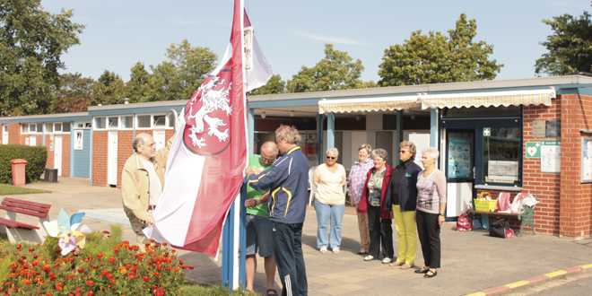 Die Gemeinde Schladen Werla hat als Rechtsnachfolger der Gemeinde Schladen und somit Eigentümer des wunderschönen Kleinods, Naturfreibad, eine neue Fahne herstellen lassen, die als Symbol erkennen lässt, das diese Freizeiteinrichtung zu Schladen gehört. Unter dem Beifall einiger Frühschwimmerinnen, hisste der Bürgermeister Heinz Jürgen Wiechens mit Unterstützung des Trägervereinsvorstandsmitglieds Ingo Ahrens und dem Schwimmmeister Andreas Heinrich, die neue Fahne. Der Bürgermeister verband diesen Akt mit dem Wunsch, dass sich viele Bürger unter dieser Fahne einfinden werden. Was auch bedeuten würde, dass das Bad entsprechend frequentiert wird und der Besuch und die Akzeptanz zum Erhalt der schönen Naturoase beigetragen wird.